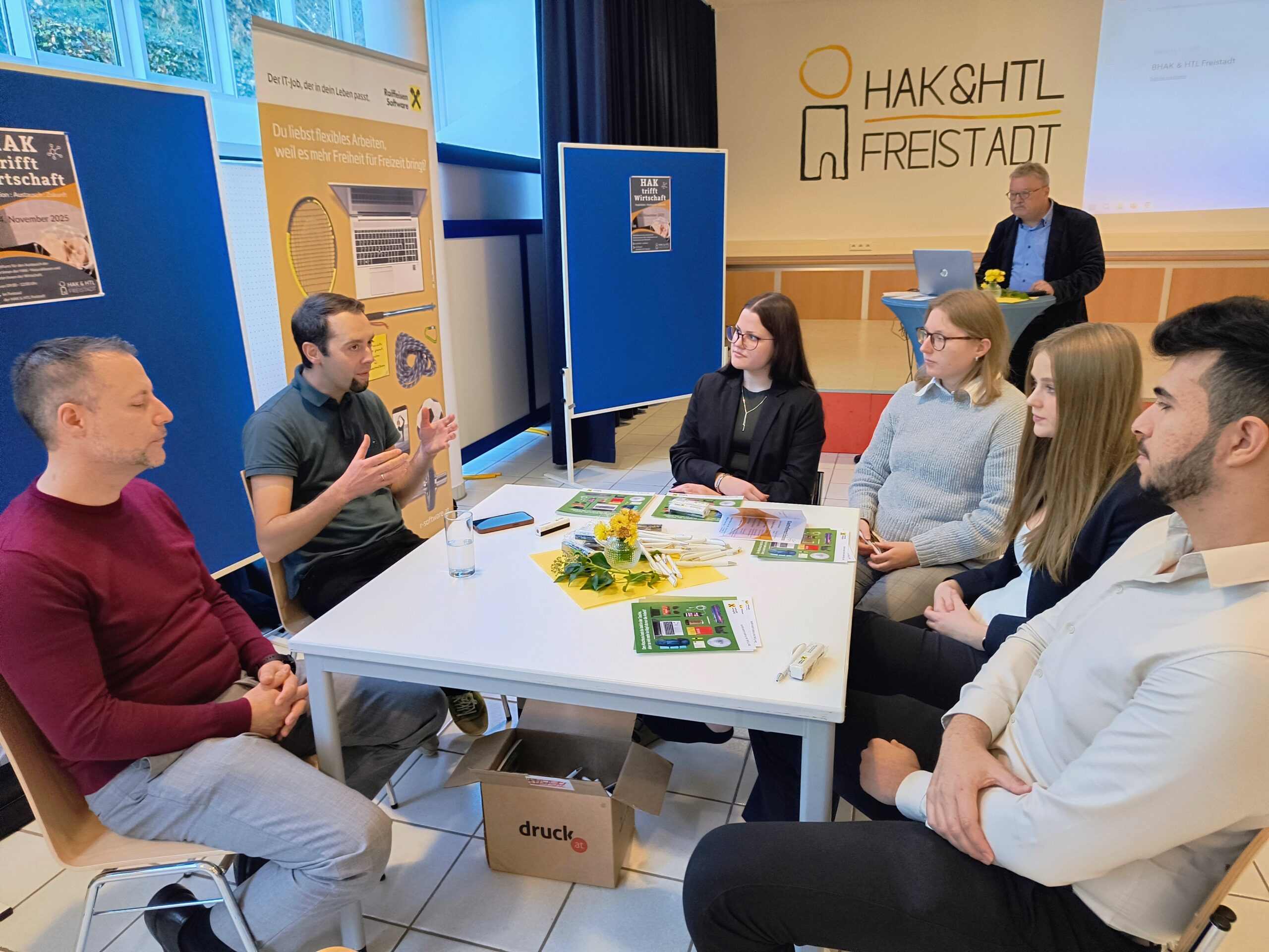 Repräsentant*innen von verschiedenen Unternehmen und Branchen, wie, Leitner&Leitner; World Bank; Bundesministerium für Finanzen; Voest Alpine Stahl GmbH, Microsoft Österreich GmbH, Mit Reisen GmbH, Raiffeisen Software GmbH – das waren die Gäste (alle Absolvent*innenen der Schule) am Aktionstag „HAK trifft Wirtschaft 2025“ an der Handelsakademie Freistadt.