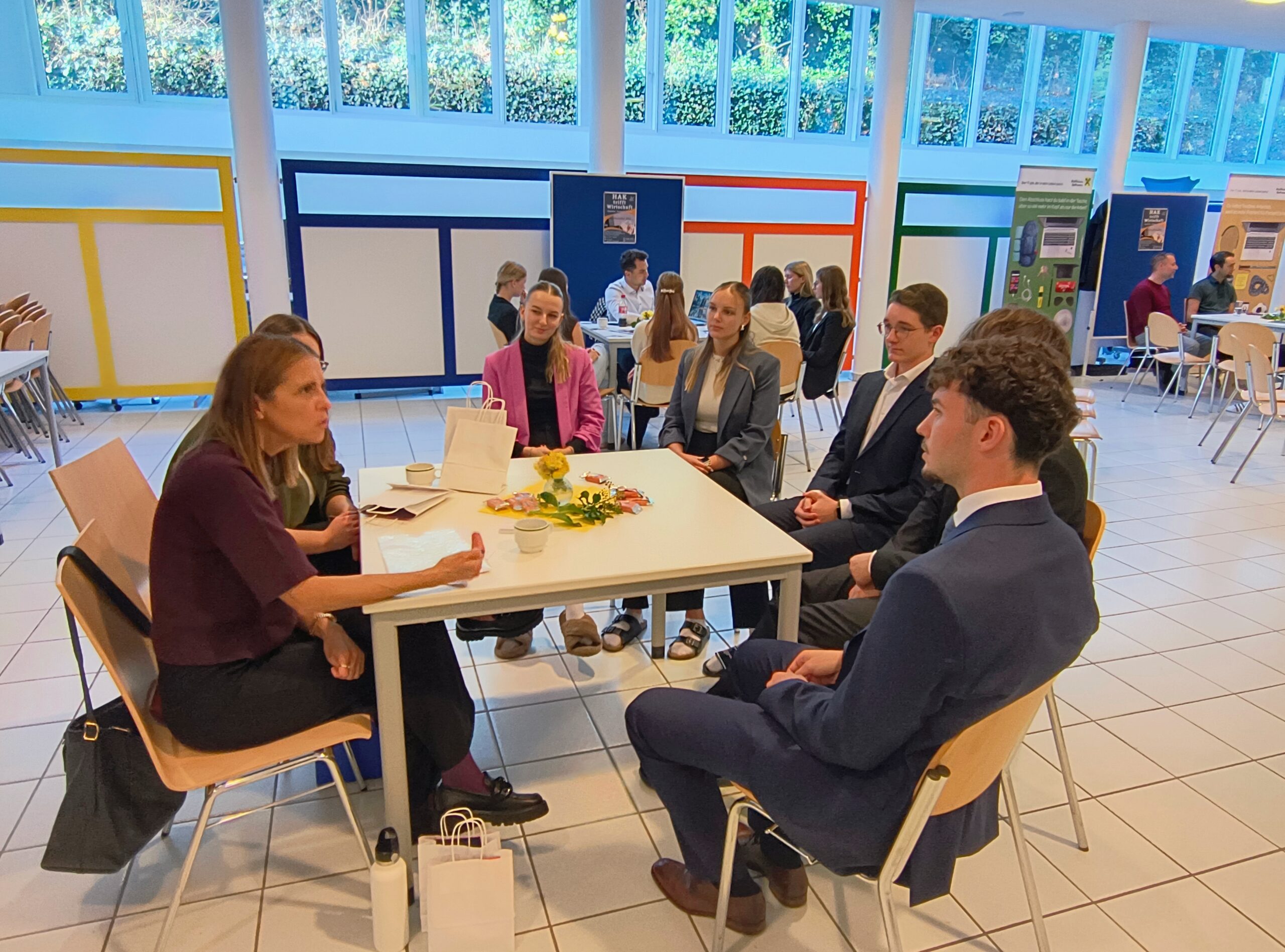 Nach einer Präsentationsrunde, in der erfolgreiche Absolvent*innen über ihren Werdegang berichteten, wurden die Gespräche mit den Schüler*innen in Form eines World-Cafes vertieft.