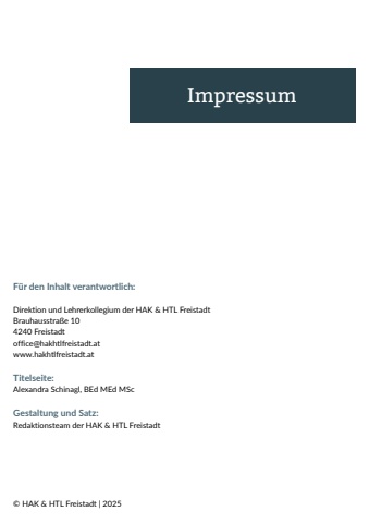 ImpressumDirektionundLehrerkollegiumderBrauhausstra%u00dfe104240Freistadtoffice@hakhtlfreistadt.atwww.hakhtlfreistadt.atTitelseite:AlexandraSchinagl,BEdMEdMScGestaltungundSatz:RedaktionsteamderHAK&HTLFreistadt%u00a9HAK&HTLFreistadt|2025