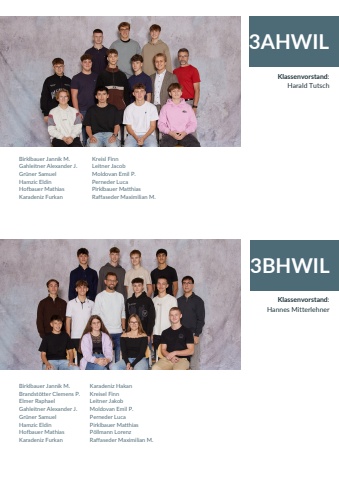 3AHWILKlassenvorstand:HaraldTutschKlassenvorstand:HannesMitterlehnerBirklbauerJannikM.Brandst%u00f6tterClemensPElmerRaphaeGahleitnerAlexanderJ.Gr%u00fcnerSamuelHamzicEldinHofbauerMathiasKaradenizFurkanKaradenizHakanKreiselFinnLeitnerJakobMoldovanEmilP.PernederLucaPirklbauerMatthiasP%u00f6llmannLorenzRaffasederMaximilianM.BirklbauerJannikM.GahleitnerAlexanderJ.Gr%u00fcnerSamuelHamzicEldinHofbauerMathiasKaradenizFurkanKreislFinnLeitnerJacobMoldovanEmilP.PernederLucaPirklbauerMatthiasRaffasederMaximilianM.