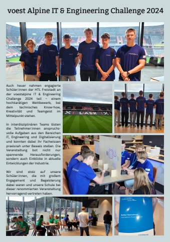 voestAlpineIT&EngineeringChallenge2024AuchheuernahmenengagierteSch%u00fcler:innenderHTLFreistadtandervoestalpineIT&EngineeringChallenge2024teil%u2013einemhochkar%u00e4tigenWettbewerb,beidemtechnischesKnow-how,Kreativit%u00e4tundTeamgeistimMittelpunktstehen.dieTeilnehmer:innenansruchsvolleAufgabenausdenBereichenT,EngineeringundDigitalisierungundkonntendabeiihrFachwissenpraxisnahunterBeweisstellen.DieVeranstaltungbotnichtnurspannendeHerausforderungen,sondernauchEinblickeinaktuelleEntwicklungenderIndustrie.WirsindstolzaufunsereSch%u00fcler:innen,diemitgro%u00dfemEngagementundBegeisterungdabeiwarenundunsereSchulebeidieserrenommiertenVeranstaltunghervorragendvertretenhaben.